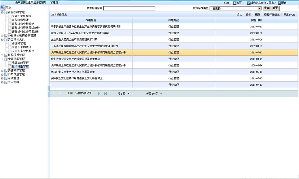 依據(jù)安全評價過程控制上報的數(shù)據(jù)對安評機構(gòu)業(yè)績、安全評價人員業(yè)績進行智能統(tǒng)計匯總,并上報至國家安監(jiān)局??筛鶕?jù)安全評價機構(gòu)、年份、安全評價人員等條件進行查詢,查看、導(dǎo)出、打印安評機構(gòu)或安全評價人員的業(yè)績表;可以統(tǒng)計分析比較各安評機構(gòu)的業(yè)績,為安全評價機構(gòu)的定期考核提供依據(jù)。
