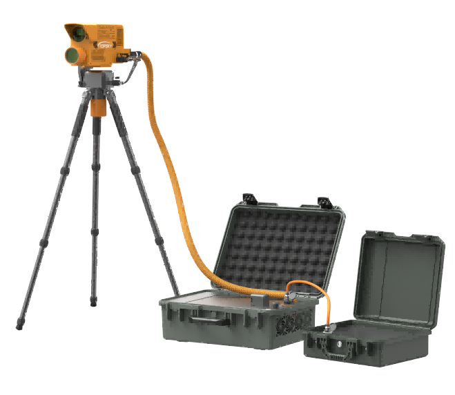光學破拆裝置內(nèi)置高能光纖激光器,能夠從地面發(fā)射激光對鋼板、鋁板、鋼筋、彩鋼瓦、樹木、塑料、馬蜂窩等進行遠距離切割清除。