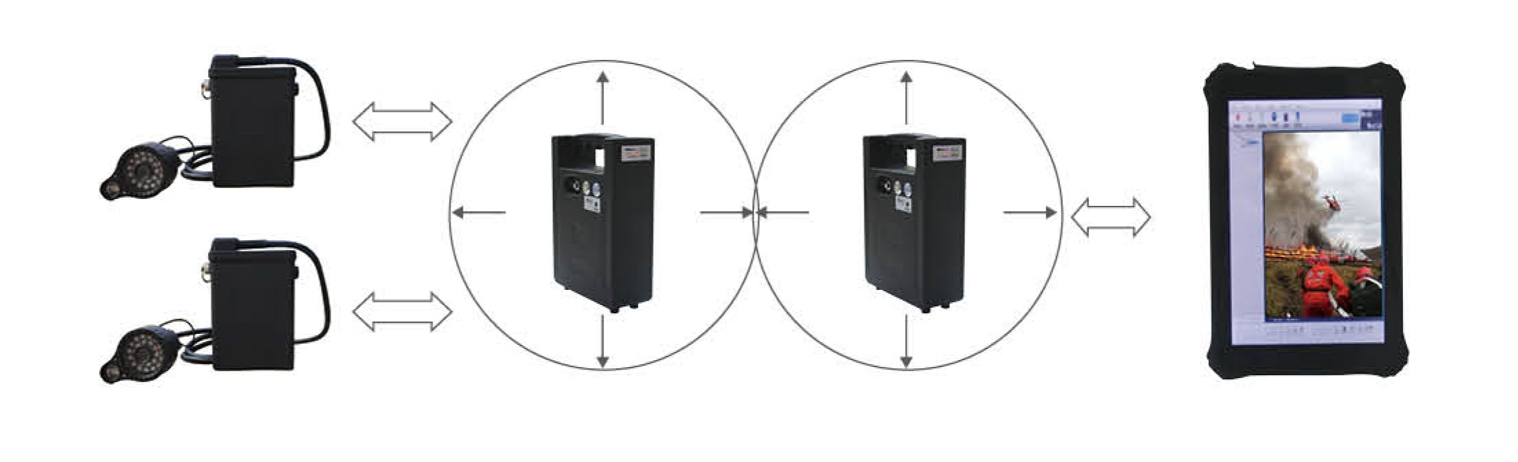 該裝置采用無線連接方式的信號中繼與傳輸,應(yīng)急通信網(wǎng)絡(luò)的通信距離可達(dá)20公里。無線通信網(wǎng)絡(luò)采用自組織、自愈合方式快速形成多跳鏈狀或網(wǎng)狀網(wǎng)拓?fù)浣Y(jié)構(gòu),無線通信距離不小于2000米,具有快速部署、高帶寬、低時延、可靠性強(qiáng)等特點(diǎn)。井下救援人員或工作人員,通過佩戴礦用本安型平板計(jì)算機(jī)、配套的低照度攝像頭自帶語音通話、無線中繼器、多參數(shù)測定儀等裝備,將現(xiàn)場的實(shí)時圖像、語音、環(huán)境參數(shù)等信息實(shí)時回傳到指揮平臺,調(diào)度指揮人員可以實(shí)時了解現(xiàn)場情況,并對現(xiàn)場人員進(jìn)行調(diào)度指揮。