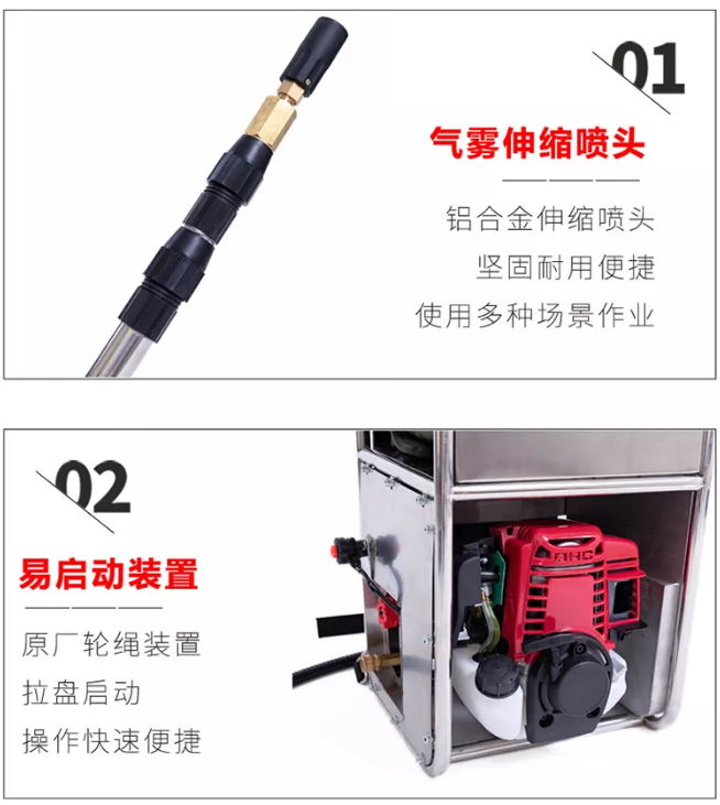 不銹鋼架,便于攜行。泵軸水平布置,減少震動。水泵泵體為柱塞液壓隔膜泵。允許砂石顆粒通過,對水質(zhì)要求低,對發(fā)動機功率損耗小。泵組可在橫向、縱向傾斜達到25°時正常工作。水帶直徑25mm,爆破壓力18MPa,表層滌綸長絲,內(nèi)襯進口橡膠,高壓森林接口連接。水泵配備的動力裝置為強制風(fēng)冷四沖程汽油機。我們的行星減速機通過特殊的處理方式,在發(fā)動機轉(zhuǎn)數(shù)超過2000轉(zhuǎn)的情況下,不會削弱發(fā)動機的動力,反而有助于發(fā)動機的動力,提高水泵的效率。