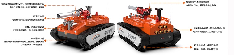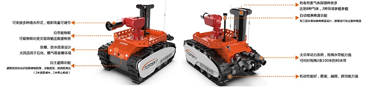 本產(chǎn)品具備滅火、音視頻偵察、有毒有害氣體偵察、災(zāi)區(qū)環(huán)境偵察功能;