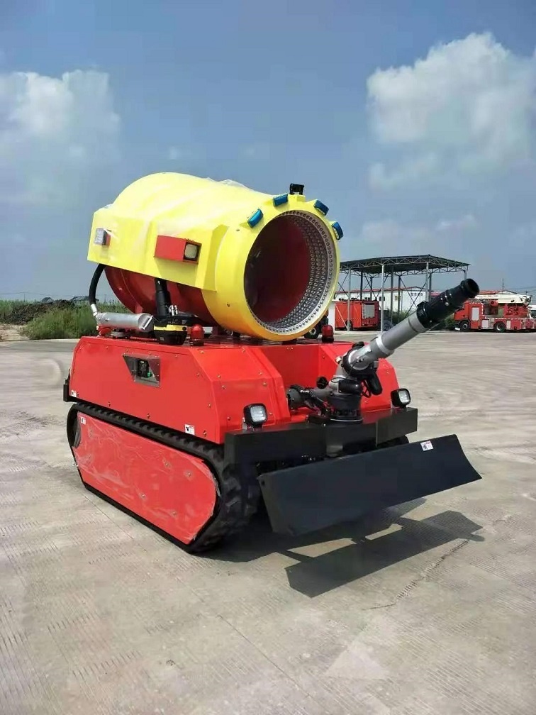 RXR-YM60000D消防排煙滅火機器人作為特種機器人的一種,采用柴油發(fā)動機作為動力源,使用無線遙控的方式遠距離操控消防滅火機器人。該機器人主要由機器人本體、大流量水炮、視頻偵察、有毒有害氣體偵察、遙控終端組成。適用公(鐵)路隧道火災(zāi);地鐵車站與隧道火災(zāi);地下設(shè)施與貨場火災(zāi);大跨度、大空間場所火災(zāi)。