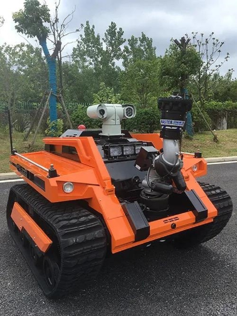 消防機器人滅火系統(tǒng)可有效的替代拖車炮、移動炮,利用自身動力將消防炮遙控至需要的位置;有效的替代消防戰(zhàn)士靠近火源及危險場所進行偵察、滅火等作業(yè),操作人員最大可在距離火源1000米以外進行滅火作戰(zhàn),避免不必要的傷亡。適用場合包括并不限于公(鐵)路隧道火災(zāi),地鐵車站與隧道火災(zāi),地下設(shè)施與貨場火災(zāi),大跨度大空間火災(zāi), 石化油庫與煉制廠火災(zāi),大面積毒氣與煙霧事故,危險火災(zāi)目標的偵查、進攻與掩護,人員不易接近的火災(zāi)撲救,危險場合的搶險救援。
