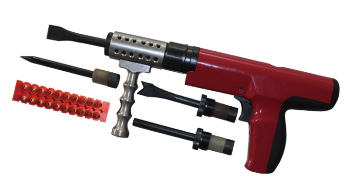 3、射擊時(shí),將毀鎖槍垂直在障礙面上,扣扳機(jī)擊發(fā),如未擊發(fā),需繼續(xù)保持緊壓工作面30秒種,才能拿起毀鎖槍,并重新供彈擊發(fā)。一次擊發(fā)后,用力將槍管拉出到最外端,然后用力再將之推到底,就完成一次退殼供彈過程,可進(jìn)行下一步擊發(fā)。平鏟用于鏟斷鎖鏈、護(hù)欄、螺栓等,圓柱鏟可用于擊毀鎖芯等。V型鑿可切斷鋼筋,切開鐵板等,尖鑿可對(duì)鐵皮打孔等。