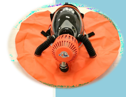 遇到緊急情況或者需要隔絕式防護(hù)的應(yīng)急場(chǎng)合,使用人員應(yīng)按佩戴的要求迅速戴上呼吸面罩,并根據(jù)個(gè)人臉型調(diào)整呼吸面罩上的緊固帶松緊程度,并佩戴緊固。人員呼出的低氧氣含量(17%左右)、高二氧化碳含量(4.5%左右)的氣體通過(guò)呼吸面罩的單向出氣口進(jìn)入空氣再生罐。在空氣再生罐內(nèi),呼出氣體中的二氧化碳與生氧劑發(fā)生化學(xué)反應(yīng)產(chǎn)生氧氣。當(dāng)呼出氣體從空氣再生罐經(jīng)呼吸軟管流入氣囊時(shí)已置換成新鮮空氣。新鮮空氣儲(chǔ)存在氣囊中,人體吸氣時(shí)產(chǎn)生負(fù)壓,新鮮空氣分別沿氣囊左右兩側(cè)的呼吸軟管流回面罩內(nèi),完成一次空氣循環(huán)再生;并依次往復(fù)循環(huán)下去,連續(xù)不斷地提供人體呼吸所需的新鮮空氣。