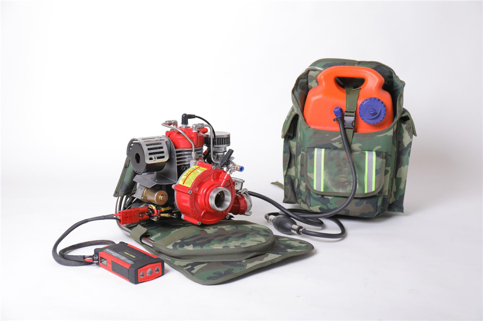 ⑿配有兩套專用水泵和油箱的雙肩高檔背包,更方便攜帶和翻山越嶺的行軍,此背包可以快速拆卸,避免背帶系統(tǒng)接觸水源,防止消防員背負(fù)時(shí)弄濕衣服,冬季可減少衣服和背包結(jié)冰的幾率。