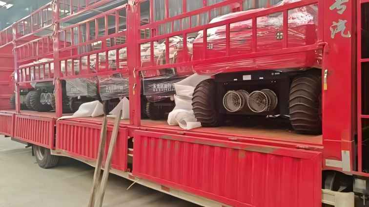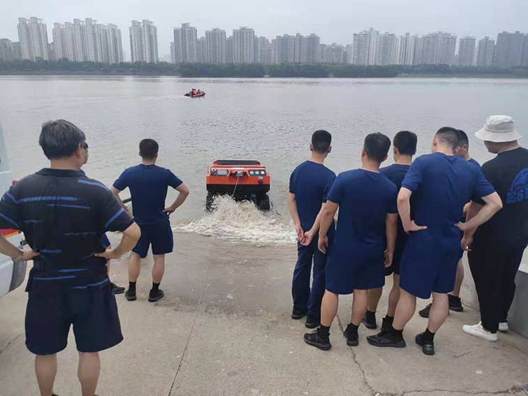 水陸兩棲 采用6×6輪式,液壓驅(qū)動,水陸兩棲,可全地形行駛??稍谒掀⌒羞M(jìn),適合多種救援場景。