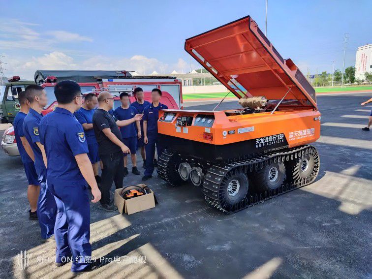 RXR-Q280D 排澇破拆一體化機(jī)器人(輪履復(fù)合)采用柴油機(jī)為動力,液壓系統(tǒng)驅(qū)動,使用遠(yuǎn)程無線遙控/有線遙控/車體操控。排澇破拆一體化機(jī)器人(輪履復(fù)合)可用于城市車庫、地鐵站、隧道、涵洞、城市狹小道路等環(huán)境的排澇救援。當(dāng)城市發(fā)生洪澇災(zāi)害,導(dǎo)致地下車庫、地鐵、隧道等蓄水嚴(yán)重時,排澇破拆一體化機(jī)器人(輪履復(fù)合)可實現(xiàn)快速排洪救援。本產(chǎn)品具備排水、音視頻偵察、水中漏電偵察、災(zāi)區(qū)環(huán)境偵察等功能,履帶可快速拆裝,滿足不同使用環(huán)境及路況。本產(chǎn)品配套的水帶車可同時收卷 ≥2 盤DN200大口徑水帶。機(jī)器人配備的水泵具有排污、放水、檢修等大口徑端口設(shè)置。