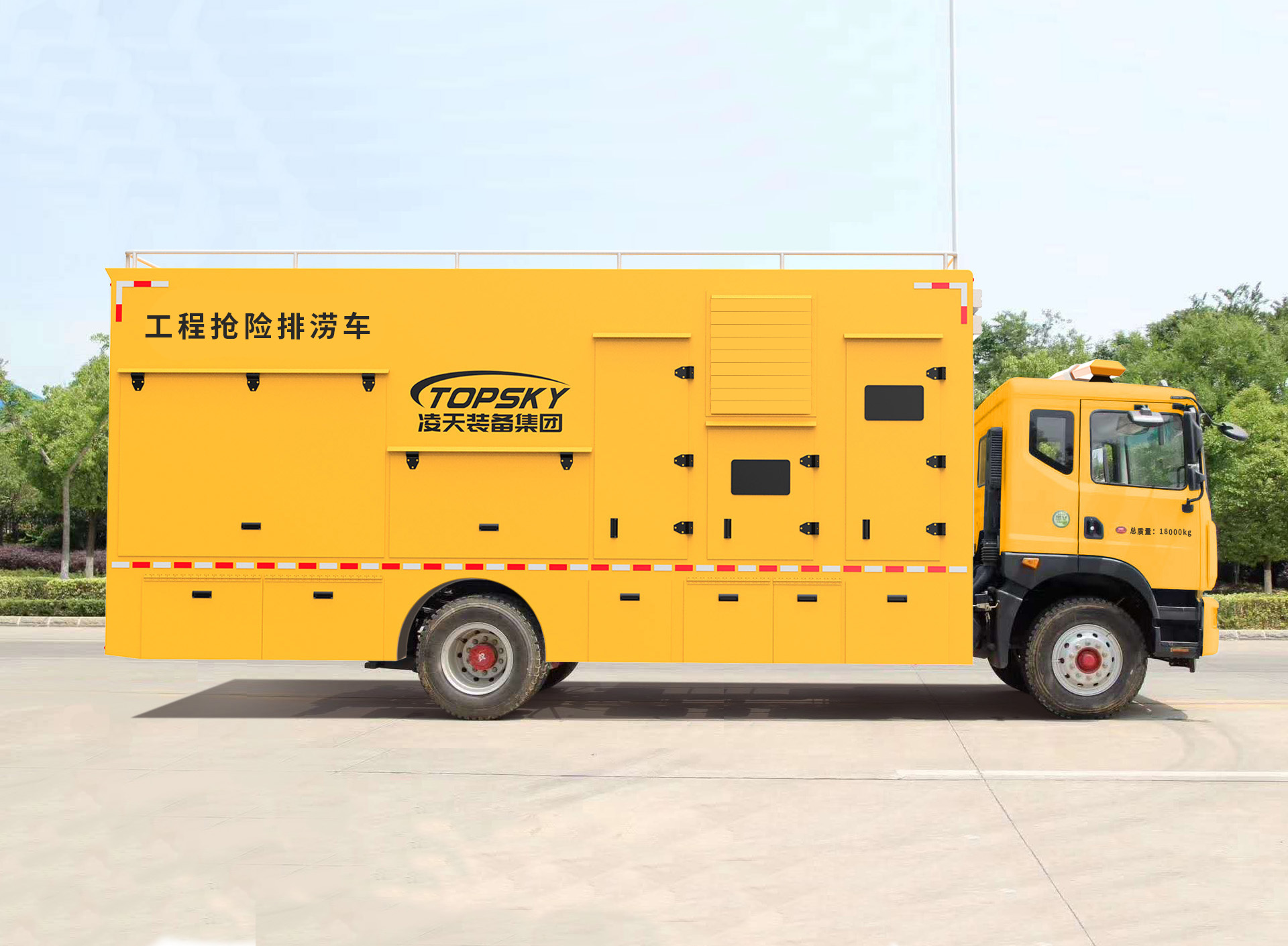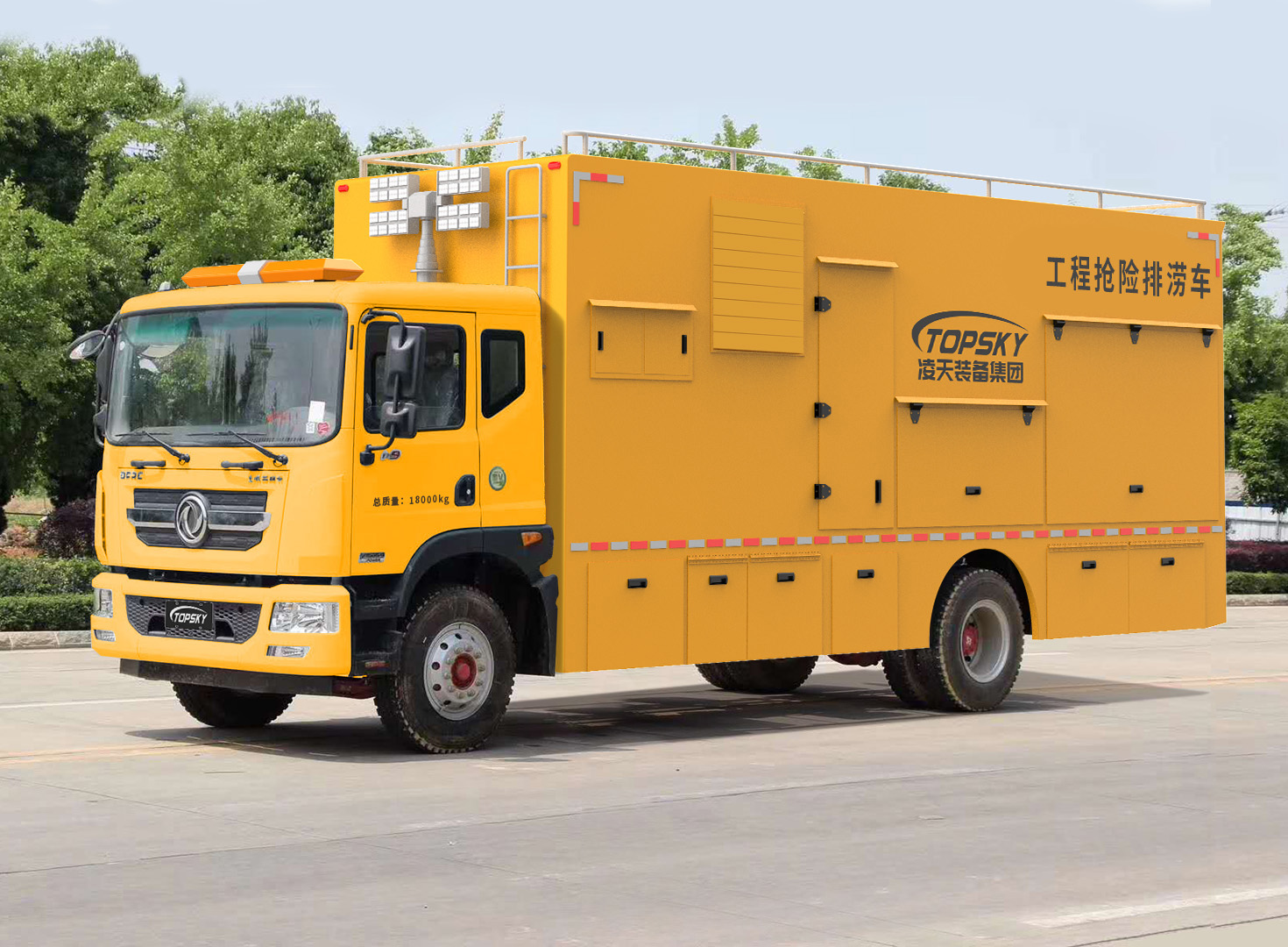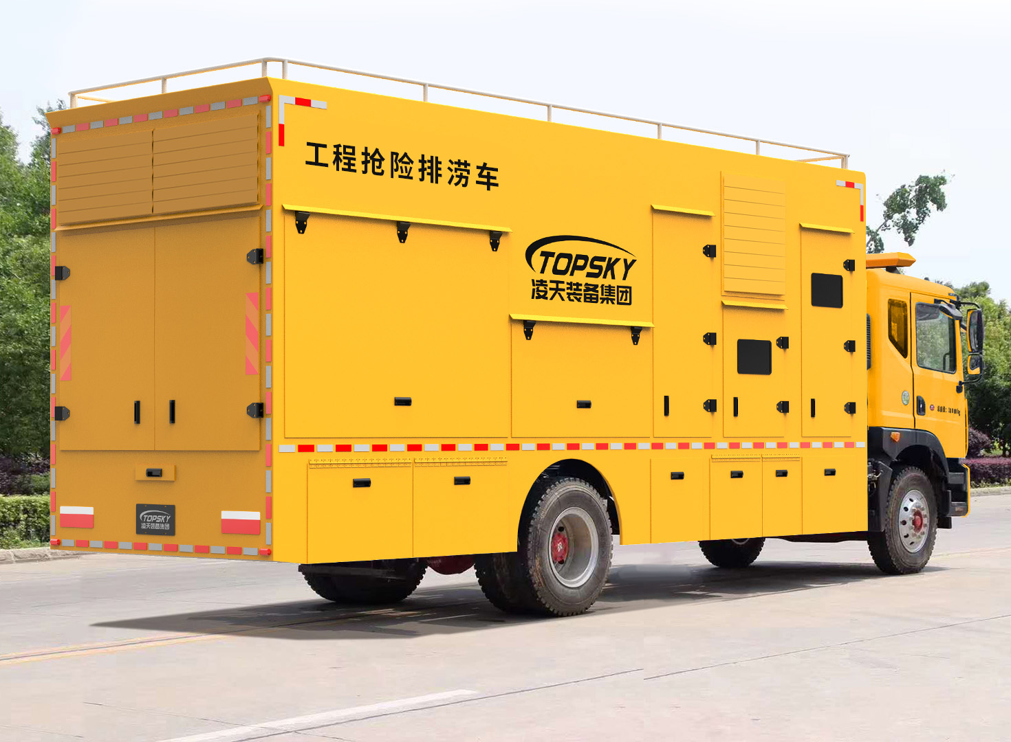 3.整車布局合理分電源動(dòng)力區(qū)、指揮休息區(qū)、設(shè)備操作區(qū),整車不超重、排水流量大;