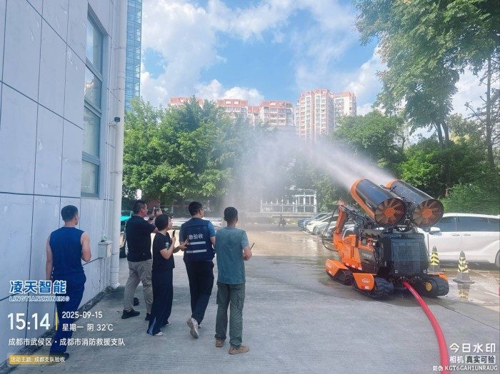 遙控器按鈕能遠程調節(jié),自由控制行駛速度和水炮,滿足現(xiàn)場實際需要。