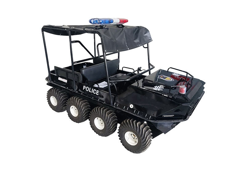 在復雜惡劣的地形條件和自然環(huán)境下,水陸兩棲全地形車可以讓搜救隊員和攜帶的救援裝備快速到達救援現(xiàn)場,減少徒步帶來提供消耗,完成最后一公里最好五分鐘緊急救援任務。水陸兩棲全地形車可配備點到絞盤、救援擔架組件、探照燈、警示燈、警報器、脫鉤、破拆工具等裝備, 給救援團隊提供救援保障,更安全的解救傷員和疏散群眾。