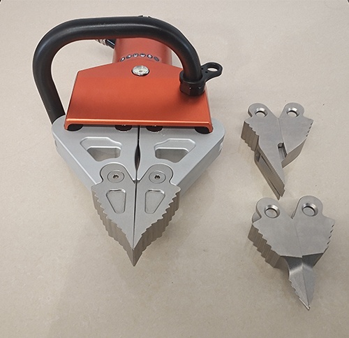 7.標(biāo)配開(kāi)門開(kāi)縫、撕裂兩套多功能工具頭,可根據(jù)實(shí)際救援情況隨意更換。開(kāi)縫最小插入間隙為2mm,撕裂工具頭可手動(dòng)戳穿3mm的Q235A金屬板。