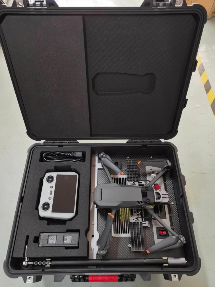 消防無(wú)人機(jī)主體為碳纖維材質(zhì),機(jī)臂可快速折疊,整機(jī)重量輕便、體積小巧,方便攜帶和快速展開(kāi)。機(jī)身下方有通用載荷接口,可快速換裝不同任務(wù)載荷,通用載荷接口最大可負(fù)載5kg任務(wù)載荷,載重能力優(yōu)秀。整機(jī)空載續(xù)航大于45min,超長(zhǎng)航時(shí)可滿(mǎn)足大部分應(yīng)用場(chǎng)。消防無(wú)人機(jī)配置有RTK和毫米波雷達(dá),可實(shí)現(xiàn)厘米級(jí)定位精度和避障能力。