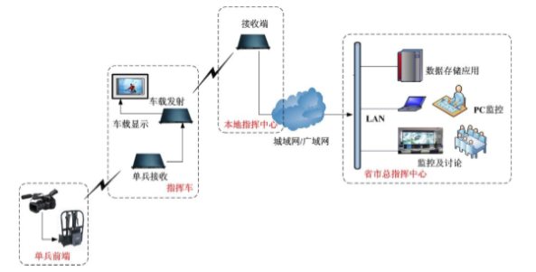 可做單兵發(fā)射-指揮監(jiān)控車或單兵發(fā)射-指揮監(jiān)控中心等應用。