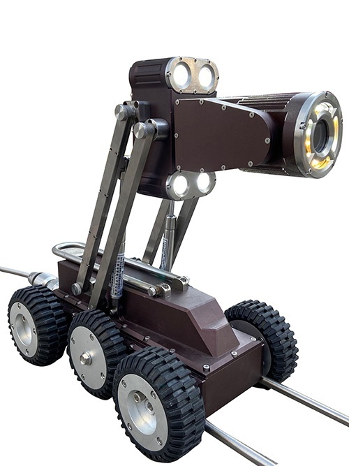 針對煤礦井下發(fā)生事故后,救援人員不能及時了解現(xiàn)場情況的問題,設(shè)計并研制了一種鉆孔救援機(jī)器人,該產(chǎn)品是由爬行器(攝像頭)、鉆孔自動(手動)盤線車、無線系統(tǒng)控制器 (電腦端)、電源適配器等部分組成,通過操作主控制機(jī)器人界面,可實(shí)現(xiàn)控制爬行器在孔內(nèi)行走,并將釆集到的救援孔內(nèi)部圖像通過線纜實(shí)時傳輸?shù)街骺刂破鬟M(jìn)行實(shí)時監(jiān)視,配合判圖軟件一鍵生成檢測報告。檢測系統(tǒng)還配有專業(yè)的控制軟件,可運(yùn)行在windowslO系統(tǒng)上控制本套檢測機(jī)器人。可進(jìn)行圖像存儲。監(jiān)視圖像時如果發(fā)現(xiàn)人與物體,可以通過錄像或拍照記錄出來以便對其判斷、分析。在主控制器的顯示界面上,可以隨時了解爬行器的狀態(tài),包括傾角、氣壓、距離、速度、平臺高度、日期等相關(guān)信息。該裝置也可用于其他地質(zhì)鉆井探測中,基于礦山鉆孔救援探測需求,針對現(xiàn)有探測機(jī)器人信息探測范圍窄、探測距離較短、功能單一、無越障能力等問題,設(shè)計出礦山鉆孔救援探測機(jī)器人。